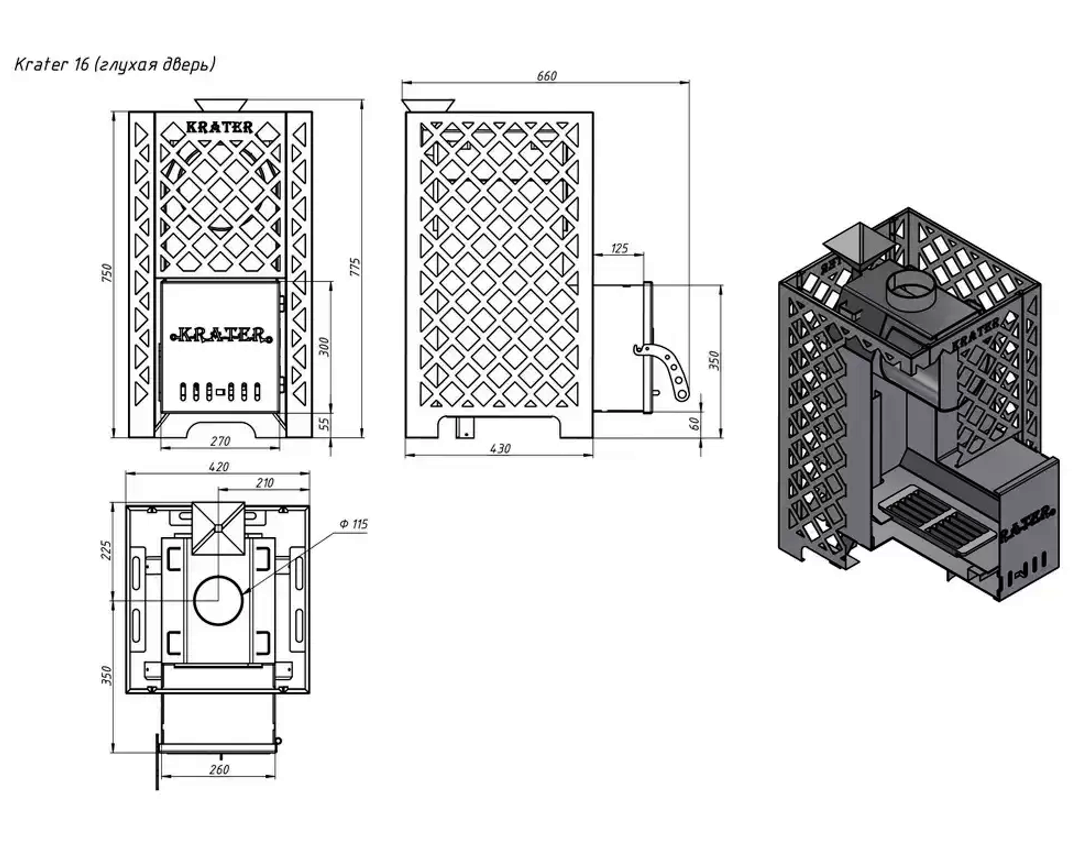 Баня – это отдых души и тела! Печь «Кратер 16С» от ASTON поможет создать идеальную атмосферу комфорта и уюта. Благодаря выносной топке можно наслаждаться огнем из предбанника. Закрытая каменка ускоряет прогрев помещения до объема 18 куб.м., а дверца со стеклом подарит эстетическое удовольствие при подаче пара. Толстостенная сталь (3мм) обеспечивает надежность конструкции, сделанной в России. Легко устанавливается своими руками! Наслаждайтесь банными процедурами уже сегодня!