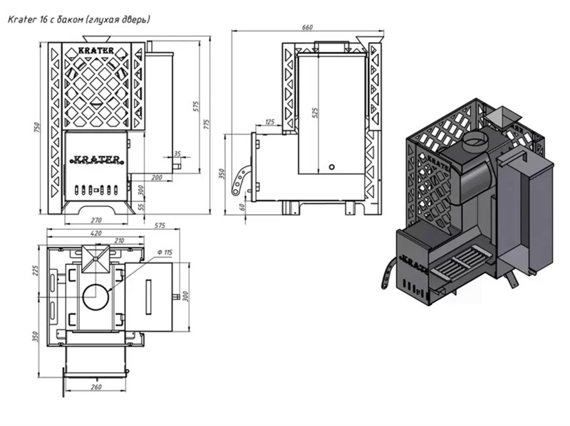 Баня – это отдых души и тела! Пусть он будет максимально комфортным благодаря дровяной печке «Кратер 16C» от бренда Aston! Закрытая каменка (масса камня — 120 кг) обеспечит равномерное распределение тепла по всей парилке объемом до 18 куб.м., выносная топка упростит процесс растопки, а встроенный бак ускорит нагрев воды. Прочное стальное исполнение толщиной 3мм гарантирует долгий срок службы без потери внешнего вида. Прозрачная дверца подарит удовольствие любоваться огнем, создавая особую атмосферу уюта.
