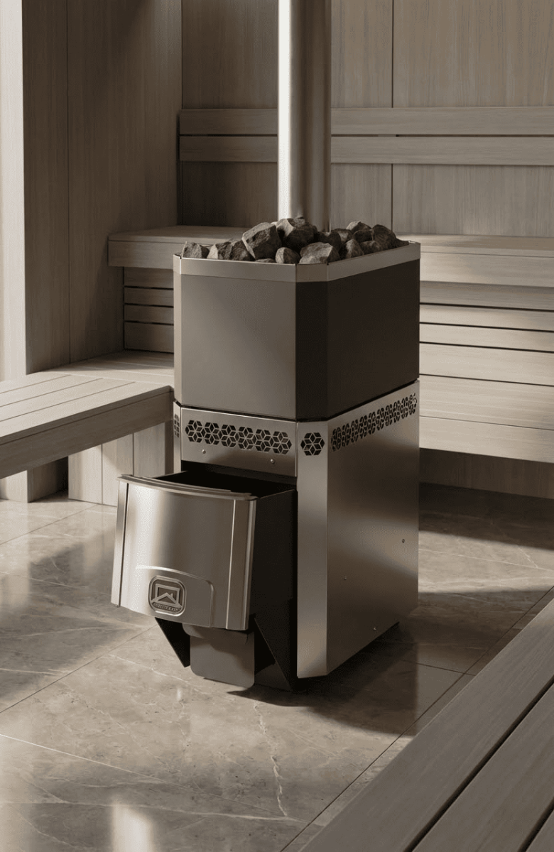 - Выносная топка позволяет удобно подкладывать дрова, не выходя из парилки.