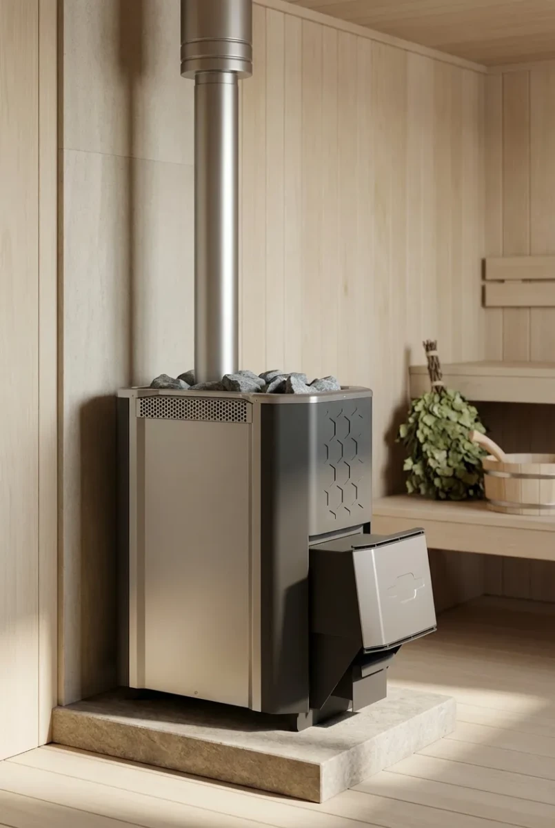 Данная модель предназначена для быстрого нагрева воздуха и камней, обеспечивая эффективное парообразование. Конструктивное решение с выносной топкой позволяет удобно размещать печь даже в небольших помещениях, повышая комфорт эксплуатации. Благодаря использованию нержавеющей стали корпус устойчив к коррозии и долговечен в условиях повышенной влажности. Подходит для саун и бань объемом до 24 кубических метров.
