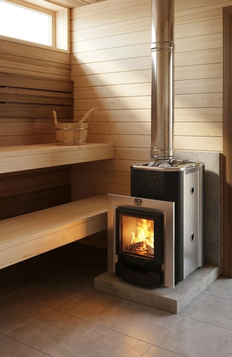 Откройте для себя идеальное тепло вашей собственной сауны! Практичная дровяная печь с регистром (теплообменником) "Сибирь - 20 ВРК Панорама" от российского бренда Теплодар – это гармония комфорта и надежности из России! Нержавейка толщиной 2,5мм гарантирует долговечность конструкции, водяным контуром обеспечивается равномерное распределение тепла, а выносная топка добавляет удобства при растопке. Зачарует и панорамная дверца, открывающая завораживающий вид живого огня. Прекрасно впишется в интерьер любой парилки объемом до 20м³.