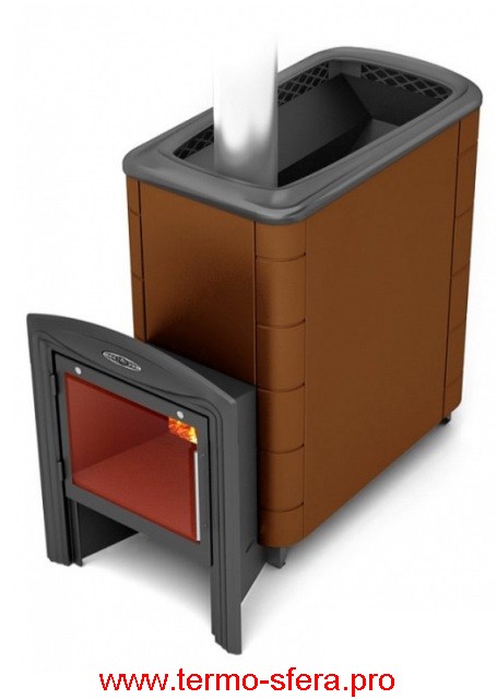 Профессионально спроектированная банная печь «Тунгуска XXL» от производителя ТМФ эффективно прогревает помещения объемом до 24 кубометров. Выполненная из нержавеющей стали толщиной 3 мм, она отличается долговечностью и устойчивостью к коррозии. Особенность модели – выносная топка и дверца типа «панорама», обеспечивающая великолепный вид горящего пламени. А цветовая гамма витра-терракота придаст бане особый колорит и уют. Печь российского производства сочетает надежность и эстетику, идеально подходит для ценителей качественного пара и комфорта.