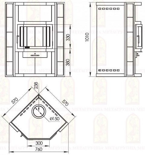 "Печь-камин 'Амур' от производителя 'Мета-Бел': идеальный выбор для вашего дома! Антрацитово-черный дизайн прекрасно впишется в любой интерьер; а объем обогреваемого пространства (до 180 куб.м.) позволит наслаждаться теплом всей семье! Угловая установка экономит место, дверцы из трёх стекол подарят панорамные виды пламени, создавая атмосферу уюта и комфорта. Прочный стальной корпус толщиной 3мм обеспечит надежность службы печи." Тепло, уют и стиль – всё это печь-камин 'Амур'"