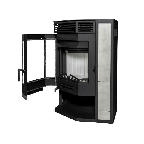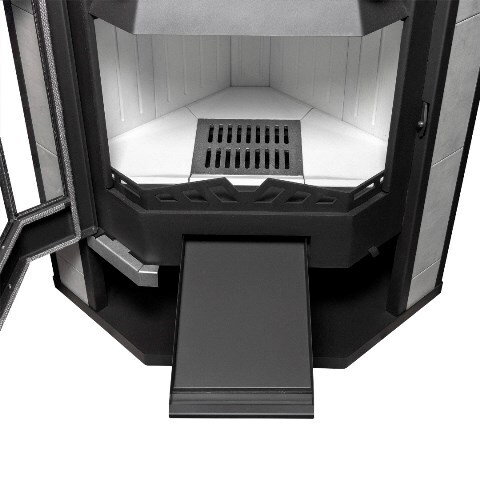 Угловая печь-камин «Амур 12» от производителя «Мета-Бел»: современный дизайн (антрацитовый цвет), высокая мощность обогрева (до 240 куб.м).мощностью 12 кВт. Панорамное стекло из трех жаропрочных стекол обеспечивает эффектное зрелище огня. Безопасная конструкция выполнена из стали толщиной 3 мм., вес изделия всего 185 кг., что упрощает транспортировку и установку. Удобен диаметр дымового патрубка – 150 мм. Выдержит дрова длинной до 550мм.