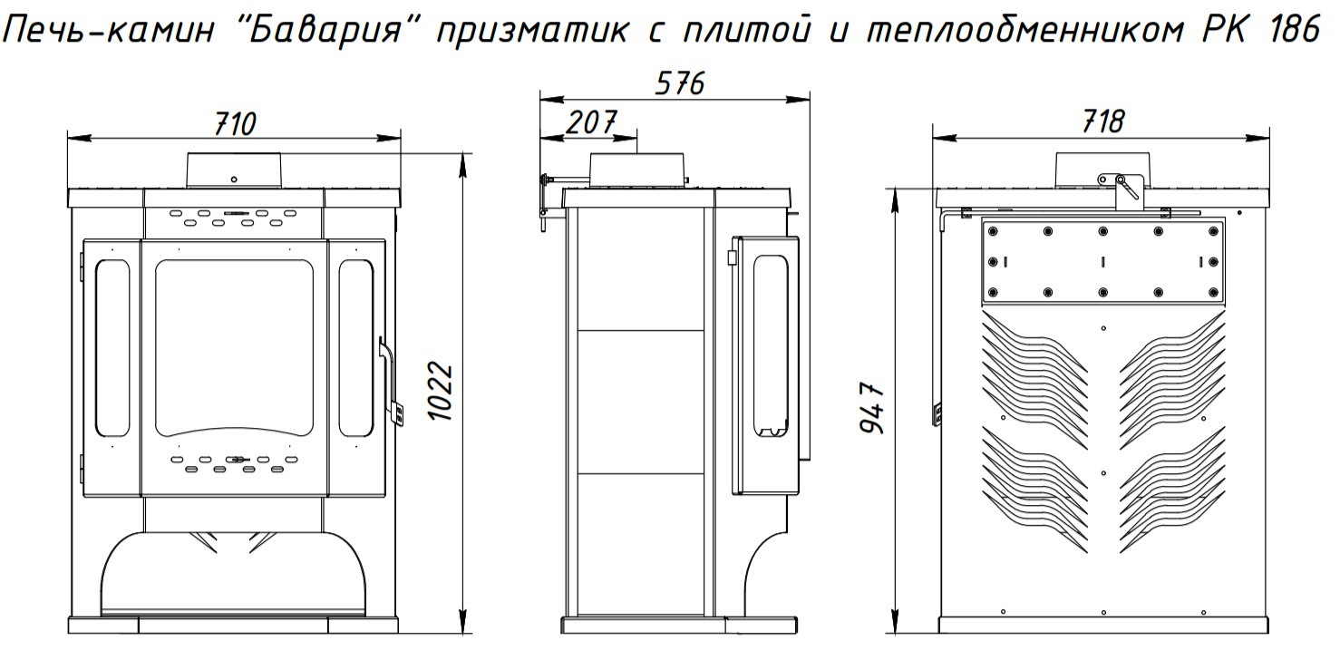 Откройте для себя печь-камин Бавария Призматик с плитой от российского производителя ЭкоКамин! Ее мощь (до 12 кВт) обогреет помещение объемом до 240 кубических метров, а варочная поверхность позволит приготовить вкуснейшие блюда из свежих продуктов! Призматическая конструкция, выполненная из стали толщиной 3 мм, обеспечит надежность конструкции при компактных размерах (ширина — всего 718 мм). А элегантная антрацитовая отделка придаст интерьеру стиль и современность. Насладитесь ярким огнем сквозь панорамное трехстекольное дверное стекло!