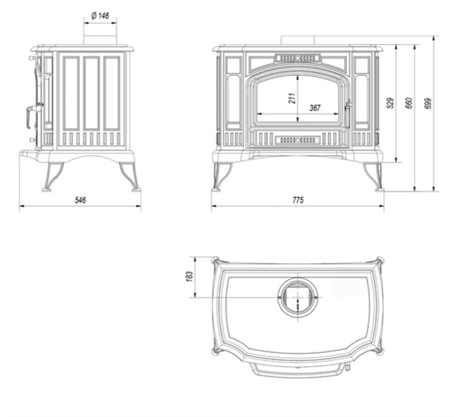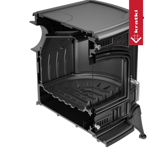 Чудесная печь-камины Kratki Koza – тепло вашего дома! Полезная мощность 12 кВт обогреет помещение объемом до 200 м³, а панорамное стекло из трёх стёкол позволит наслаждаться видом пламени. Прочный чёрный (антрацитов) чугун толщиной 8мм гарантирует долговечность печи, польское качество производителя Kratki — её надёжность. Компактные размеры (ширина 775хглубина 546хвысота 660), вес 165кг делают монтаж удобным. Удобен как задний так и верхний выход дымового патрубка диаметром 150 мм.