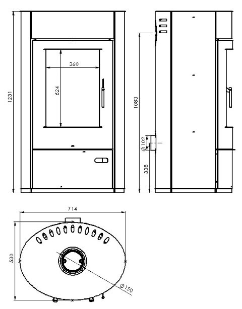 Угловая или пристенная печь-камин «Дунай» от производителя «Мета-Бел»: стильный дизайн (цвет антрацит/черный), высокая мощность обогрева до 220 м³ помещений, удобство использования панорамным остеклением, эффективная работа благодаря внешней подаче воздуха. Встроенные выходы дымохода обеспечивают простоту монтажа. Толстостенное стальное исполнение гарантирует надежность и долговечность при сравнительно небольшом весе всего 150 кг.