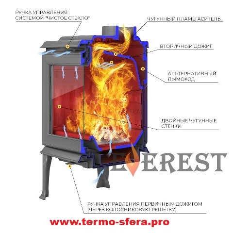 Откройте для себя уют и тепло вашего дома с печью-камином Everest F11! Изящная конструкция из прочного чугуна толщиной 8 мм подарит надежность и долговечность. Уютное панорамное стекло позволит наслаждаться видом пламени со всех сторон. При мощности в 11 кВт камин обогреет помещение объемом до 220 кубических метров. Удобство использования обеспечивает заднее расположение дымоотвода. Открывайте радость домашнего очага вместе с Everest!