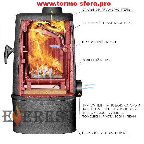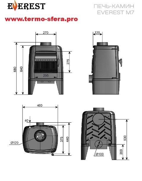 Чугунная печь-камин Everest M7 – оптимальное решение для отопления помещений объемом до 140 куб.м., обеспечивающее долговременное и эффективное тепло благодаря мощности 7 кВт. Широкая панорамная дверца позволяет наслаждаться видом горящего огня. При компактных размерах (ШxВxГ: 460х680х440 мм) и весе всего 103 кг подходит как для загородного дома, так и для дачи. Производство — Россия.