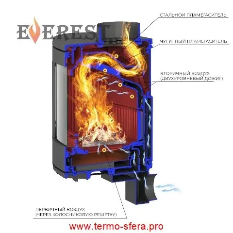 Представляем печь-камины «EVEREST S9» — тепло и уют вашего дома! Вместительные 300-мм дрова долго горят, обогревая помещение объёмом до 180 кубометров. Стильный дизайн (цвет антрацит/черный) впишется идеально как пристенно, так и угловым способом. Удобная панорамная дверца позволит наслаждаться видом огня. Сделано из надежного чугуна толщиной 8мм в России. Выносной подвод воздуха обеспечивает эффективное сгорание топлива без ущерба вашему комфорту. Весит всего лишь 130кг – легко установить своими руками!
