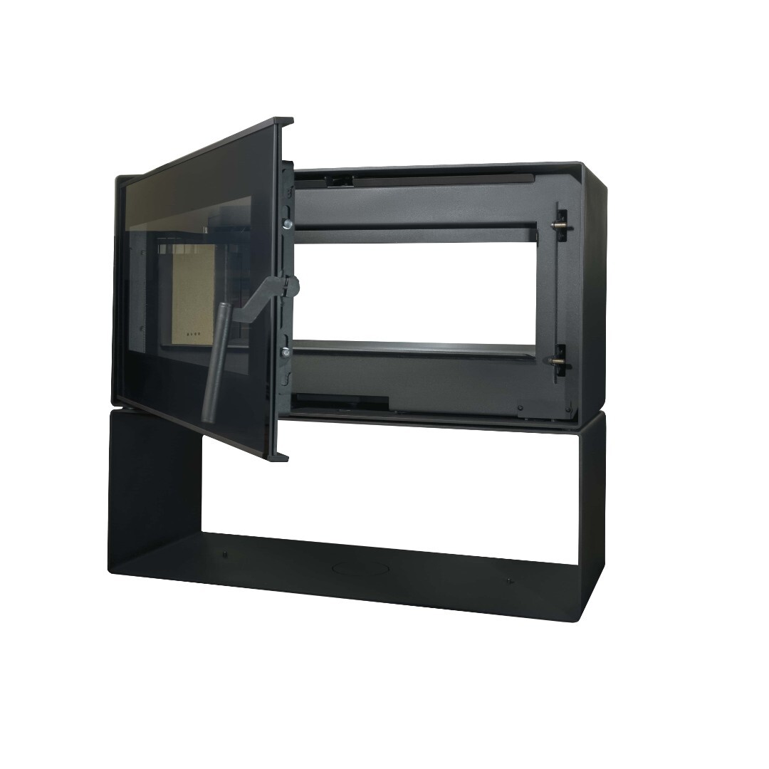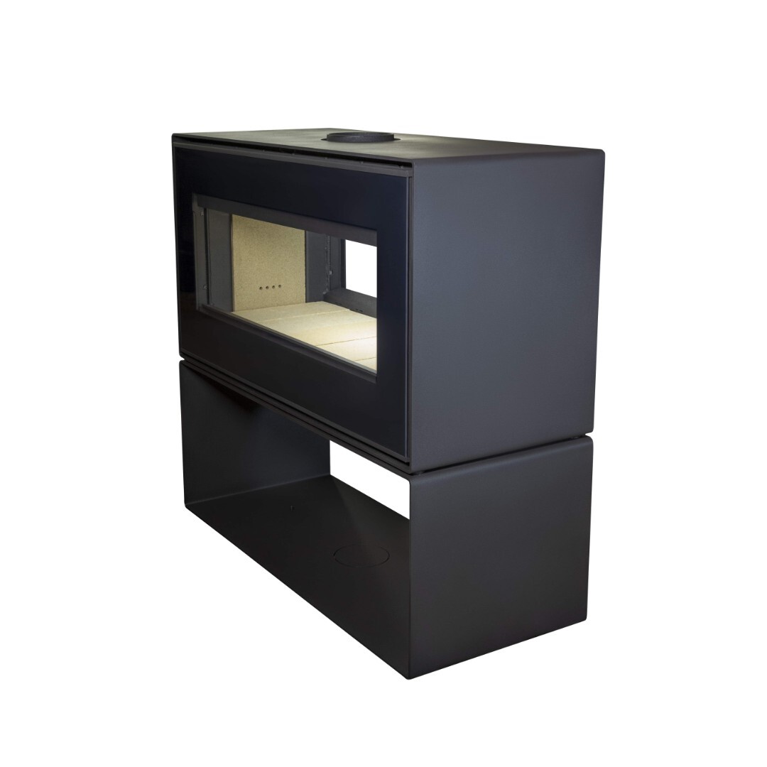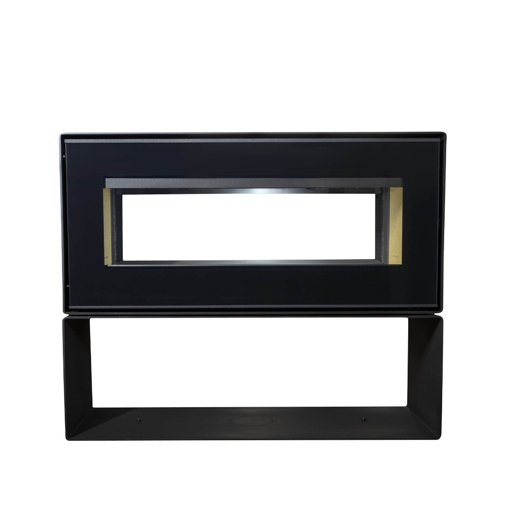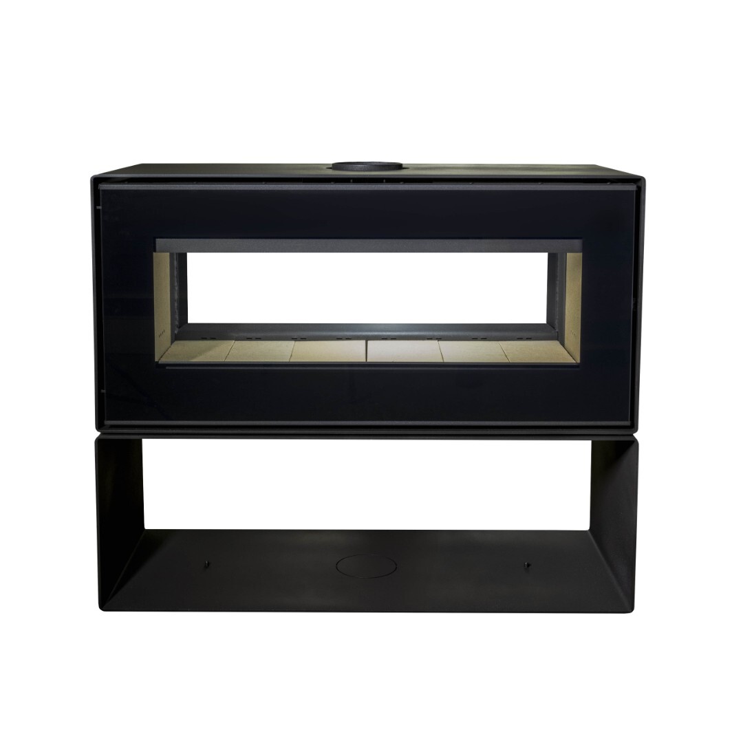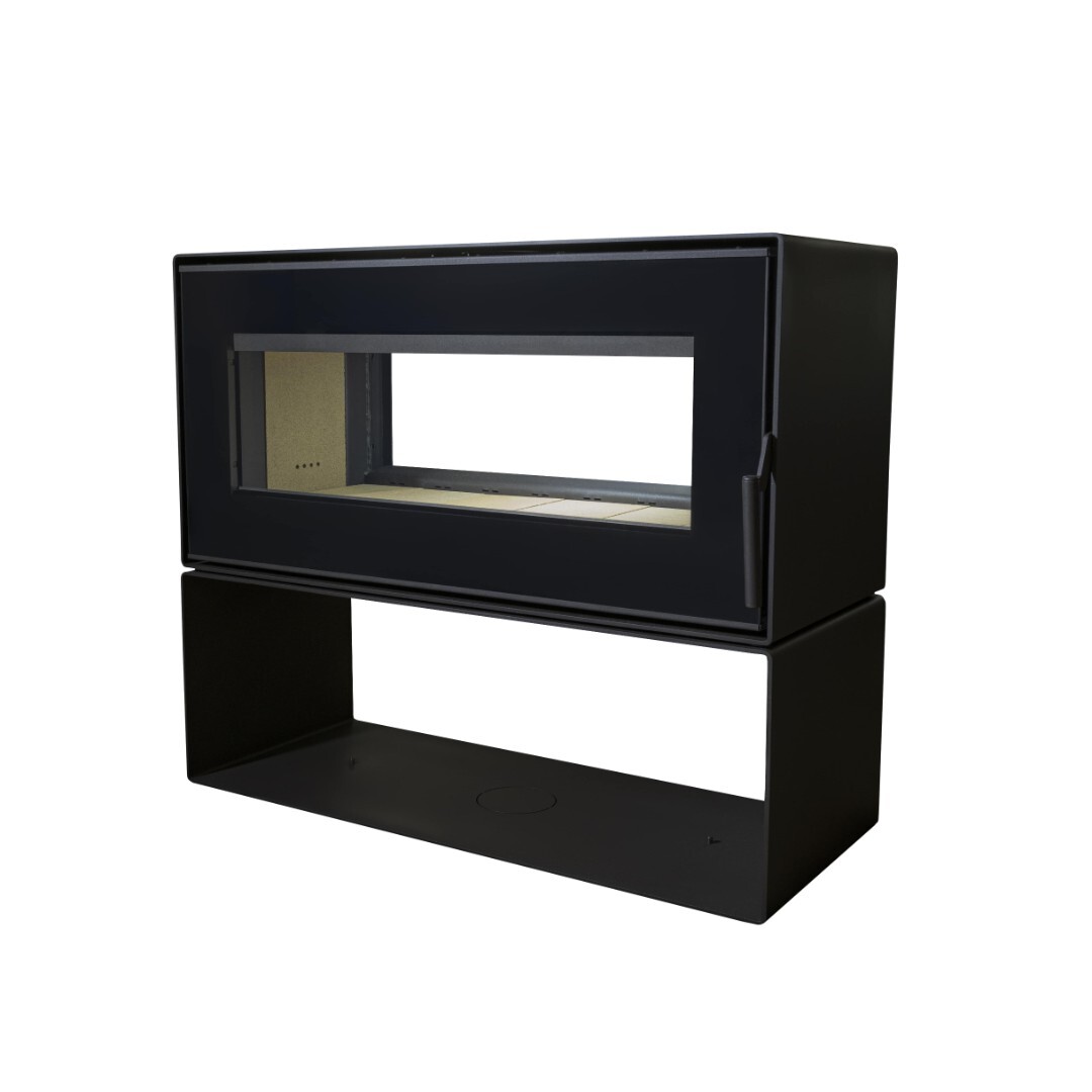 Элегантная горизонтальная конструкция с большими безрамными стеклами станет украшением интерьера будь то классика или хай-тек. Туннельная дверца подчеркивает изысканность модели. Топка из качественной стали вместит дрова до 80 см, а чугунная колосника обеспечит равномерное горение. Магнитный замок гарантирует надежность, а регулировка подачи воздуха позволяет выбрать режим горения. Удобная подставка дополнит дизайн и поможет хранить топливо.