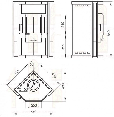 Угловая печь-камин «Нева» от производителя «Мета-Бел»: эффективное отопление помещений объемом до 120 куб.м., стильный дизайн в цветах антрацит/черный, удобство эксплуатации благодаря панорамной дверце из трех стекол. Изготовлена из качественной стали толщиной 3мм; вес конструкции — всего 95кг (легко установить!), мощность – 6кВт. Удобная длина закладываемых дров — до 300мм, диаметр подключения дымохода — 150мм. Выглядит эффектно, обогревает быстро!