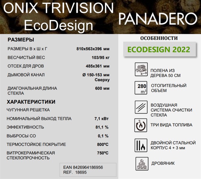 Испанский камин-печь PANADERO ONIX 3V — это элегантное решение для обогрева помещений объемом до 220 кубических метров! Три панорамных стекла обеспечивают великолепный вид на пламя, создавая атмосферу уюта и комфорта. Функция подачи воздуха извне повышает эффективность работы устройства, а футеровка из вермикулита увеличивает длительность теплоотдачи. Идеальный выбор для гостиной, созданный для настоящих ценителей качества и стиля Испании.