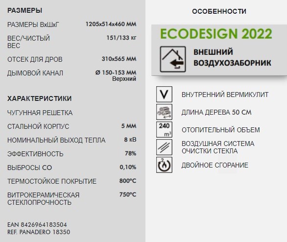 Откройте для себя уникальный камин Panadoré Osaka – элегантное решение для вашего дома! Изготовленный из стали толщиной 5 мм., этот пристенный агрегат сочетает мощность 8 кВт и стильный дизайн. Встроенная система подачи внешнего воздуха обеспечивает комфорт и безопасность использования. Декоративная дверца «панорама» позволит наслаждаться живым огнем, а вермикулитовая изоляция гарантирует долговечность изделия. Испанский бренд Panadoré предлагает вам тепло и уют испанской печи прямо у вас дома!
