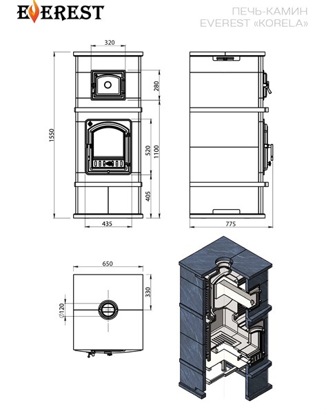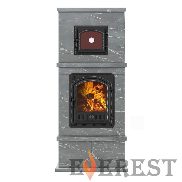 Аналог Русской печи с духовкой. Откройте для себя уют каменной облицовки из талькохлорита и практичность печи с духовкой для вашего дома вместе с печью-каминами Everest «Korela». Tалькохлорит и чугунные элементы обеспечивают долговечность и надежность прибора. Удобная дверца панорамного стекла позволяет наслаждаться видом живого огня. Мощности в 15 кВт хватит для обогрева просторных помещений объемом до 320 кубических метров! Продукт российского производства идеально подойдет для загородного дома или дачи – создайте атмосферу тепла и комфорта уже сегодня!