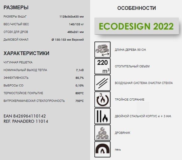 Испанская печь-камины PANADERO GOURMET – это сочетание тепла домашнего очага и удобства приготовления пищи! Мощная (до 7 кВт), компактная модель идеально обогреет помещение площадью до 220 куб.м., а панорамное стекло позволит наслаждаться видом пламени. Черная сталь толщиной 4мм обеспечивает надежность конструкции, а встроенная духовка добавит комфорта вашему дому. Идеально подходит для гостиных и загородных домов!