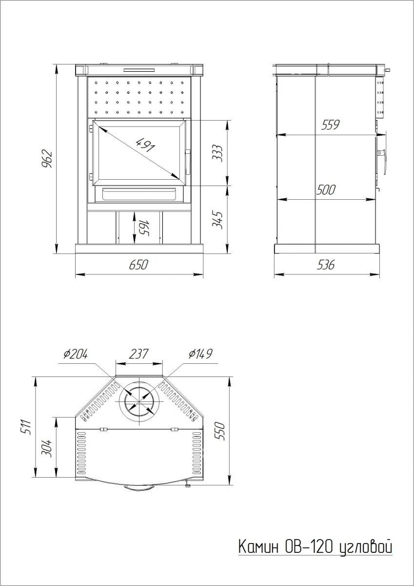 Теплодар Камин Ов-120 — стильное решение для вашего дома! Производителем выступает известная российская компания "Теплодар", гарантирующая высокое качество изделия из стали толщиной 3 мм. Угловая конструкция идеально впишется даже в небольшое помещение, а дверца с панорамным стеклом позволит наслаждаться живым пламенем. Вместительная топка подходит для дров длиной до 400 мм., обеспечивая мощность обогрева до 12 кВт и эффективное отопление помещений объемом до 120 кубических метров. Элегантная черная гамма делает камин универсальным элементом интерьера.