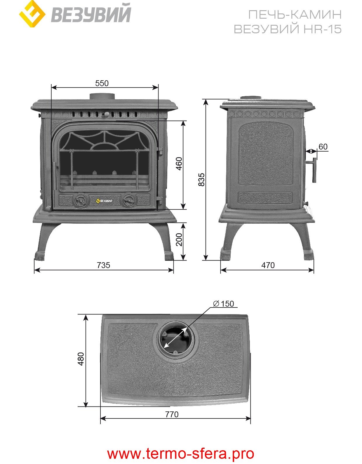 Чугунная печь-камин «Везувий HR-15 Антрацит» эффективно обогреет помещение объемом до 200 куб.м., обеспечивая комфортное тепло благодаря высокой мощности (15 кВт). Панорамное стекло дверцы позволяет наслаждаться видом пламени, а компактные габариты (ШxВxГ: 775х885х485 мм) подходят даже для небольших помещений. Простота установки — пристенной, возможность подключения стандартного дымохода диаметром 150 мм делают монтаж удобным и быстрым. Изготовлена в России компанией «Везувий».