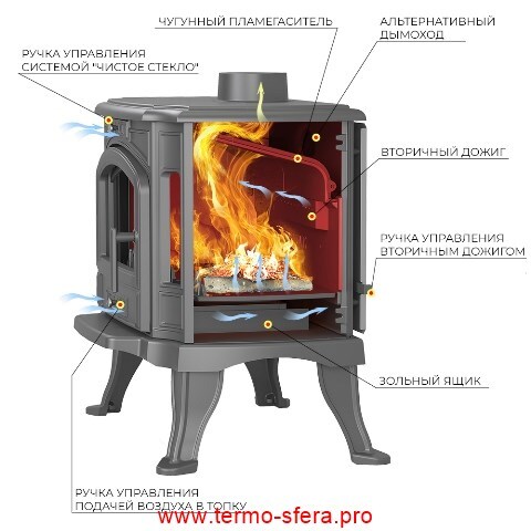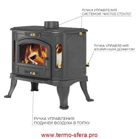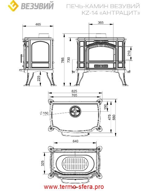 Чугунная печь-камину «Антрацит» от бренда «Везувий» мощностью 14 кВт эффективно обогреет помещение объемом до 280 кубических метров. Тройное панорамное стекло дверцы обеспечивает эстетичное наблюдение за огнем. Модель компактна (ширина – 825 мм., высота – 785 мм.), имеет удобную длину закладки дров — 450 мм. Два варианта выхода дымохода упрощают монтаж. Сделано в России из чугуна толщиной 10 мм., вес изделия составляет всего лишь 200 кг. Идеально впишется в интерьер благодаря стильному цвету антрацит.