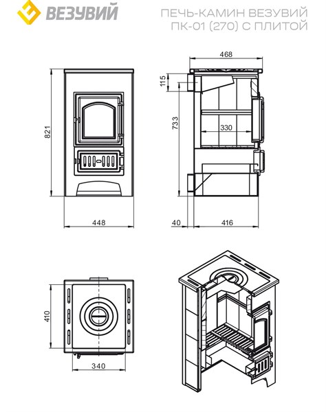 Эффективное тепло вашего дома — каминная печь «Везувий ПК-01» мощностью 9 кВт обогреет помещение объёмом до 150 кубических метров! Удобство приготовления пищи обеспечивает встроенная варочная плита из стали. Компактные размеры и стильный бежевый цвет позволяют гармонично вписать модель в любой интерьер. При производстве используется качественная сталь толщиной 3 мм., вес изделия всего 142 кг., диаметр дымохода – 115 мм. Сделано в России.
