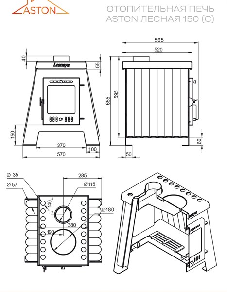 Печь отопительная ASTON «Lesnáя 150» – идеальный выбор для обогрева помещений до 150 м³! Благодаря дверце со стеклом вы насладитесь живописным пламенем, а варочная поверхность позволит приготовить ароматную еду. Вместительный стальной корпус (толщиной 3 мм) гарантирует надежность и долговечность. Ради вашего комфорта – производство в России, вес всего 80 кг, диаметр дымохода 115 мм. Удобно и практично!