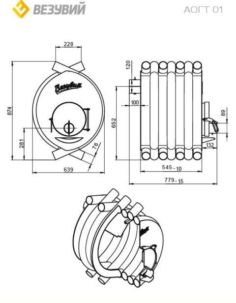 Эффективная стальная печь «Везувий АОГТ 01» мощностью 10 кВт быстро обогреет помещение объёмом до 200 кубических метров. Удобство использования обеспечивает диаметр дымохода 120 мм и заднее расположение выхода трубы. Благодаря компактным размерам (ДхШхВ – 779x639x874 мм) легко разместится даже в небольшом пространстве. Продукт российского производства, стильного антрацитово-чёрного цвета, идеально подойдёт как для дома, так и дачи.