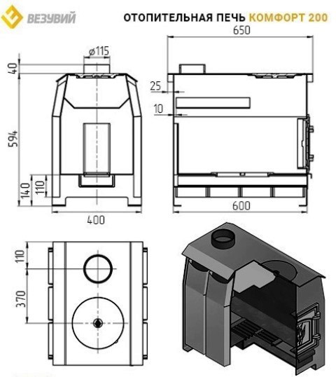 Эффективная стальная печь "Везувий Комфорт 200" мощностью 10 кВт идеально подходит для отопления помещений объемом до 200 кубических метров. Благодаря варочной плите вы сможете готовить пищу прямо у себя дома в любую погоду. Компактные размеры и вес всего 58 кг облегчают транспортировку и установку. Модель российского производства обеспечивает надежность и долговечность эксплуатации при доступной цене. Удобен диаметр дымохода 115 мм и длина закладываемых дров до 500 мм.