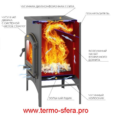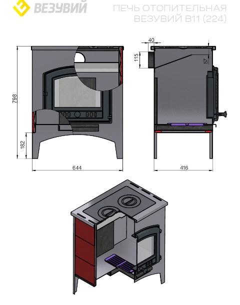 Представляем вашему вниманию печь «Везувий В11» — домашний очаг по-итальянски! Любите тепло живого огня? Тогда эта красавица в цвете антрацита создана специально для вас! Две удобные конфорки позволят приготовить ароматный кофе прямо у камина, а мощность в целых 9 кВт обогреет помещение объёмом до 170 кубических метров. Сделано из прочной стали толщиной 3мм в России компанией «Везувий». Удобство использования обеспечивает панорамное стекло дверцы и заднее расположение выхода дымохода.