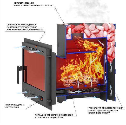 Хочешь устроить дома настоящую баню по-чёрному без дыма и копоти? Печь «Лава 16 Панорама» от бренда «Везувий» — твой идеальный выбор! Игровой дизайн, дверца-панорамка для любования огнём и выносная топка – удобно подкинуть дровишек, даже не выходя из парилки! Россия делает достойные вещи: вес всего 85кг, вмещает до 65кг камней тепла, греет парную объёмом до 18м³! Идеально подходит для дачи или загородного домика.