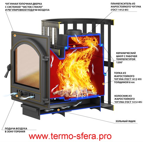 Чугунная печь «Легенда Ковка 12» от бренда «Везувий», выполненная в стиле ретро, станет элегантным дополнением вашей сауны или бани. Нагрев происходит быстро благодаря материалу толщиной 8 мм и массе камня 90 кг. Подходит для парных объемом до 12 куб.м., работает на дровах. Выносная топка облегчает загрузку топлива, дверца со стеклом позволяет наслаждаться огнем. Безопасность обеспечивает кожух-сетка отечественного производства.