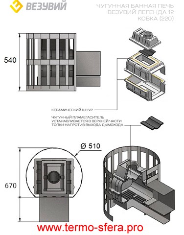 Чугунная дровяная печь "Легенда Ковка" от российского производителя "Везувий" — оптимальное решение для вашей сауны! Объем парной до 14 куб.м., толщина чугуна 8мм обеспечивает надежность и долговечность конструкции. Выносная топка упрощает процесс закладки дров, а сетка-кожух придает элегантность дизайну. Масса загружаемых камней составляет 90кг, что позволяет долго сохранять тепло. Удобный диаметр дымохода 115мм облегчает монтаж.