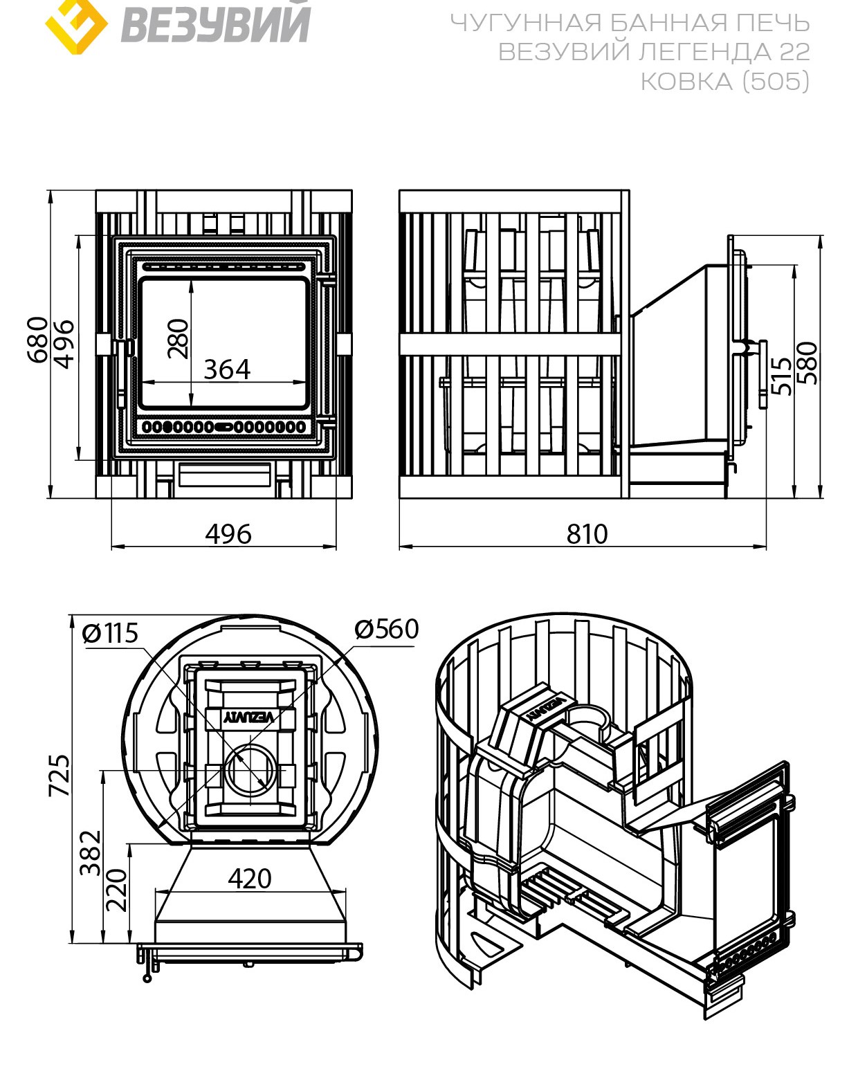 Чугунная печь «Легенда Ковка 28» от российского производителя «Везувий»: комфорт и надежность вашей сауны! Особенности модели: - Большая дверца панорамного стекла обеспечивает завораживающий вид живого огня; - Удобство эксплуатации благодаря выносной топке; - Элегантность дизайну придает кожух-сетка; - Оптимальный выбор для парных объемом до 30 кубических метров; Простота установки, высокое качество материалов и удобная загрузка дров – ваш идеальный выбор! Надежная дверца 505 Везувий из чугуна со стеклом SCHOTT ROBAX!