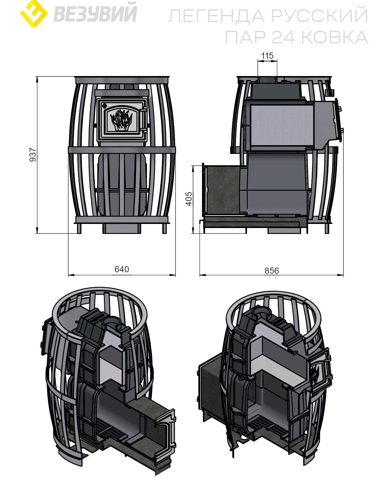 Откройте для себя истинное удовольствие от русской бани с дровяной печью «Легенда Русский пар Ковка 24 (270)» от бренда Vезувий! Печь объемом парной 24 куб.м., выполненная из надежного чугуна толщиной 6 мм, обеспечивает равномерный прогрев и поддержание оптимальной температуры. Закрытая каменка вместимостью 297 кг позволяет наслаждаться ароматным паром долгое время. Дверь со стеклом добавит эстетики вашему помещению. Выпускается в стильном кожухе-сетке — идеально впишется в любой интерьер вашей сауны или бани! Сделано в России, качество гарантировано!