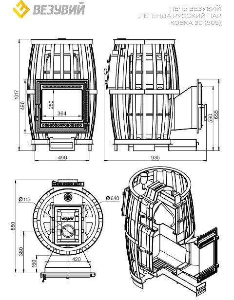 Откройте секреты настоящей русской баньки вместе с печью «Легенда» от бренда Vезувий! Прекрасный чугун толщиной 6 мм сохранит тепло надолго, а дверца-панорама подарит эстетическое удовольствие во время растопки. Выносная топка позволяет использовать печь максимально удобно – дрова можно подкладывать из смежного помещения! Насладитесь русским паром и ощутите себя настоящим ценителем традиций!