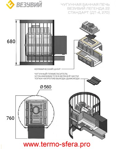 Чугунная дровяная печь "Легенда Стандарт" от российского производителя "Везувий". Идеальна для саун и бань объемом до 22 куб.м., выносная топка позволяет закладывать дрова из предбанника. Толстый чугун (8мм) обеспечивает долговечность и равномерное распределение тепла, а вес загружаемых камней в 180кг гарантирует быстрый нагрев помещения. Удобен диаметр дымохода – стандартный 115мм. Прочная сетка-кожух надёжно защитит пользователей от ожогов.