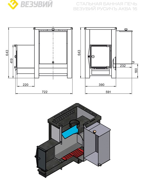 Профессионально созданная дровяная печь "Русич АКВА" от производителя "Везувий", выполненная из стали толщиной 6мм, обеспечит надежность эксплуатации и долговечность при обслуживании бань объемом до 18м³. Особенность модели – выносная топка и наличие бака вместимостью 49 литров позволяют удобно поддавать горячую воду во время процедур без выхода из помещения. Эффективность обеспечивает конвекционный кожух изделия. Продукция российского производства гарантирует качество и доступность сервисного обслуживания.