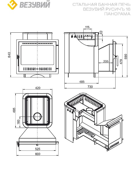Эффективное обогревание парной объемом до 18 кубометров обеспечивает дровяная печь «Русичъ Антрацит 16» от компании «Везувий». Благодаря конвекционному кожуху воздух быстро прогревается равномерно по всему помещению. Толстостенная конструкция из стали толщиной 6 мм гарантирует надежность и долговечность модели. Широкое панорамное стекло дверцы позволяет наслаждаться видом горящих поленьев без открытия дверцы — безопасность и комфорт использования гарантированы. Выносная топка упрощает процесс загрузки дров даже когда печь полностью разогрета.