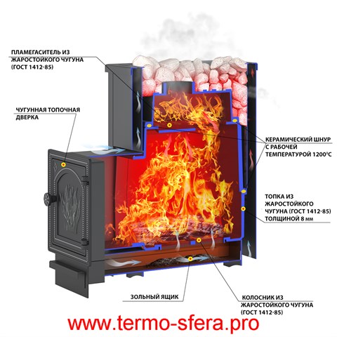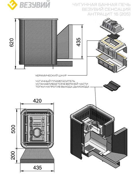 Чугунная печь «Сенсация 16» от бренда «Везувий» — идеальный выбор для вашего комфорта! Эффективно обогревает помещение объемом до 18 м³ благодаря конвекционному кожуху и выносной топке. Панорамное стекло дверцы обеспечивает эстетичное наблюдение за огнем. Толстостенный чугун (8 мм) гарантирует надежность и долговечность конструкции. Компактные размеры позволяют установить ее даже в небольших банях и саунах России.