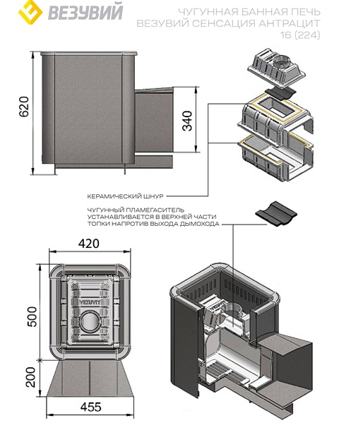 Откройте для себя удовольствие от посещения бани с дровяной печью «Сенсация 16» от российского производителя «Везувий». Удобство выносной топки позволяет комфортно растапливать печь из смежного помещения. Стильная панорамная дверца создает уютную атмосферу и подчеркивает интерьер чугонный кожух способствует равномерному прогреву парилки объемом до 18 кубических метров. Надежность конструкции подтверждена качеством российских материалов – ваш комфорт и безопасность гарантированы! Дверь - везувий 224.