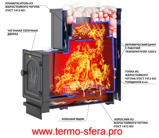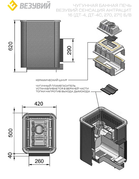 Чугунная дровяная печь «Сенсация» от российского производителя «Везувий» эффективно прогревает помещение объемом до 18 кубометров. Благодаря компактным размерам (Ш×Г×В: 200×700×620 мм), идеально подходит даже для небольших помещений конвекционного типа. Преимущества модели: — Корпус из чугуна толщиной 8 мм обеспечивает долговечность; — Топка без выносного исполнения упрощает монтаж; — Масса загружаемого камня — 20 кг, вес изделия всего 74 кг. Идеальный выбор для русской бани!
