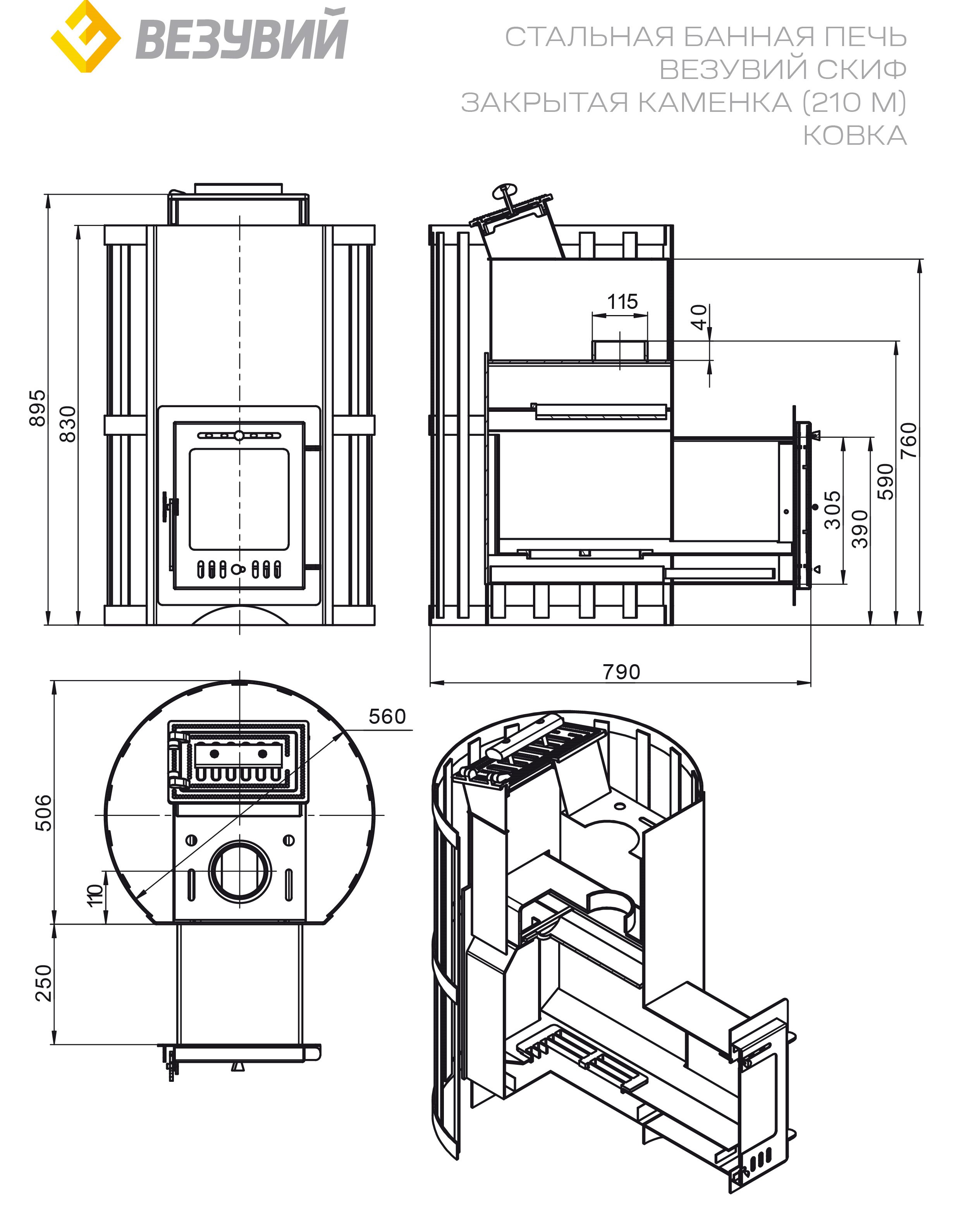 Печь «Печь ВЕЗУВИЙ Скиф с закрытой каменкой Ковка (210) "М"» — идеальное решение для вашей сауны! Загружайте до 120кг камней, наслаждайтесь паром благодаря закрытой каменке. Эффективна для помещений объемом до 18м³. Качественная сталь толщиной 6мм обеспечивает надежность конструкции, а выносная топка добавляет удобства при использовании. Эксклюзивный дизайн в исполнении российской ковки подчеркнет индивидуальность вашего интерьера. Идеальный выбор для ценителей тепла и комфорта русской бани от отечественного производителя!