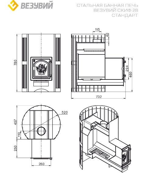 Идеальная дровяная печь «Везувий Скиф Стандарт 28» – ваш надежный спутник в создании истинного банного удовольствия! Подходит для парных объемом до 30 м³, легко прогревает помещение благодаря выносной топке и толщине стали 6 мм. Компактные размеры (ширина 520 мм, глубина 732 мм) позволяют установить её даже в небольшой бане. Кожух изделия защищена долговечным стальным кожухом-сеткой. Нагревается быстро, вмещая до 100 кг камней, а вес всего 90 кг делает монтаж удобным и простым. Сделано в России!