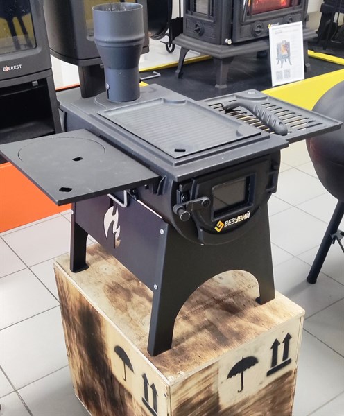 Чудесная компактная чугунная печь «Везувий Travel» мощностью 5 кВт быстро обогреет помещение объемом до 100 куб.м., идеально подойдет для дачи или загородного дома! Варочная поверхность позволяет готовить еду прямо у вас на участке – идеальный вариант для уютных вечеров с семьей и друзьями! Компактные размеры (ширина 335мм, высота 580мм), простота установки, вес всего 24кг и удобство транспортировки делают эту модель выгодной покупкой по доступной цене от российского производителя «Везувий».