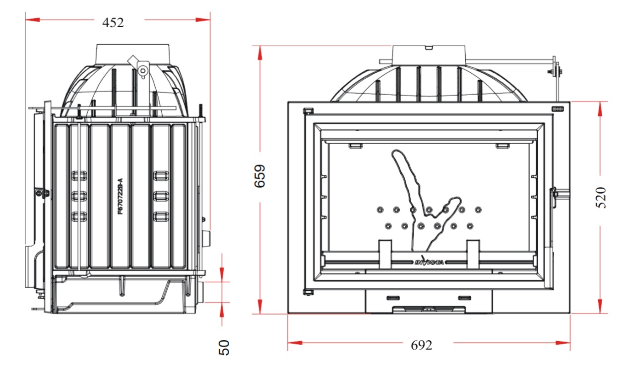 **Топка Invicta 700 Филос — надежное тепло от Франции!** Чугунная конструкция обеспечивает долговечность и равномерную отдачу тепла. Подача воздуха извне гарантирует эффективность работы и безопасность. Опционально возможна интеграция с системой вентиляции. Отапливает помещение объемом до 200 м³ (мощность 10 кВт). Внешнее открывание дверцы облегчает использование. Стильный антрацитовый дизайн впишется в любой интерьер. Производительность и качество французской печи Invicta подтверждены временем.