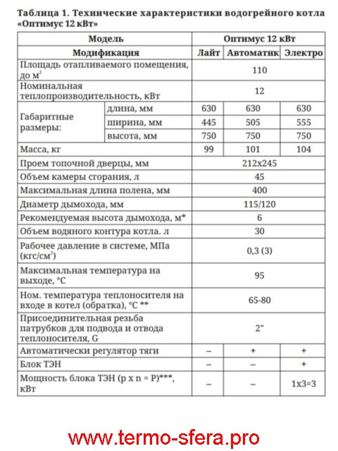 Эффективное отопление дома с твердым топливом — надежный твердотопливный котел ТМФ Оптимус 12 обогревает помещения площадью до 110 кв.м., обеспечивая стабильную работу и комфорт. При мощности 12 кВт он экономно расходует уголь и дрова. Для удобства эксплуатации предусмотрена возможность подключения ТЭНа (мощностью 3 кВт) и регулятора тяги. Изготовлен из прочной стали толщиной 3мм, весит всего 101кг, что облегчает монтаж.