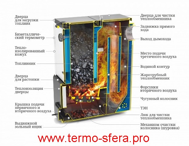 Эффективное отопление дома площадью до 180 м² обеспечивает твердотопливный шахтный котел «Цельсий» мощностью 20 кВт от производителя ТМФ. Изготовлен из прочной стали толщиной 3 мм, оснащен удобным задним выходом дымохода (диаметр 120 мм). Возможна установка электрического ТЭНа на 3/6 кВт и подключение регулятора тяги либо пульта управления для повышения комфорта эксплуатации. Удобная автономия отопления вашего жилья!